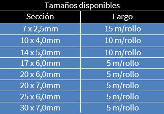 Montaje: Su cara autoadhesiva le permite una vez retirado el papel protector, la correcta ubicación y fijación sobre la superficie a sellar, facilitando así el montaje. Los extremos simplemente se superponen y cruzan delante de uno de los bulones, no necesitando encastres ni cortes en ángulo.